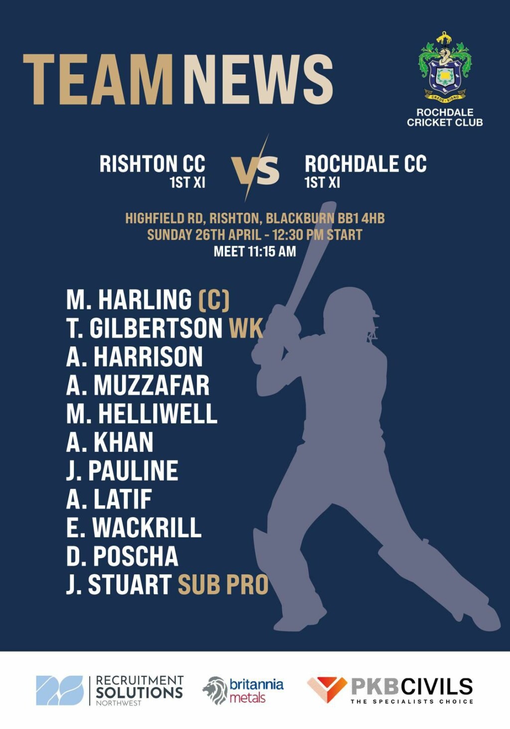 We are looking forward to our first away game of the season - Sunday 26th April 2026 - here is our 1XI Team Selection